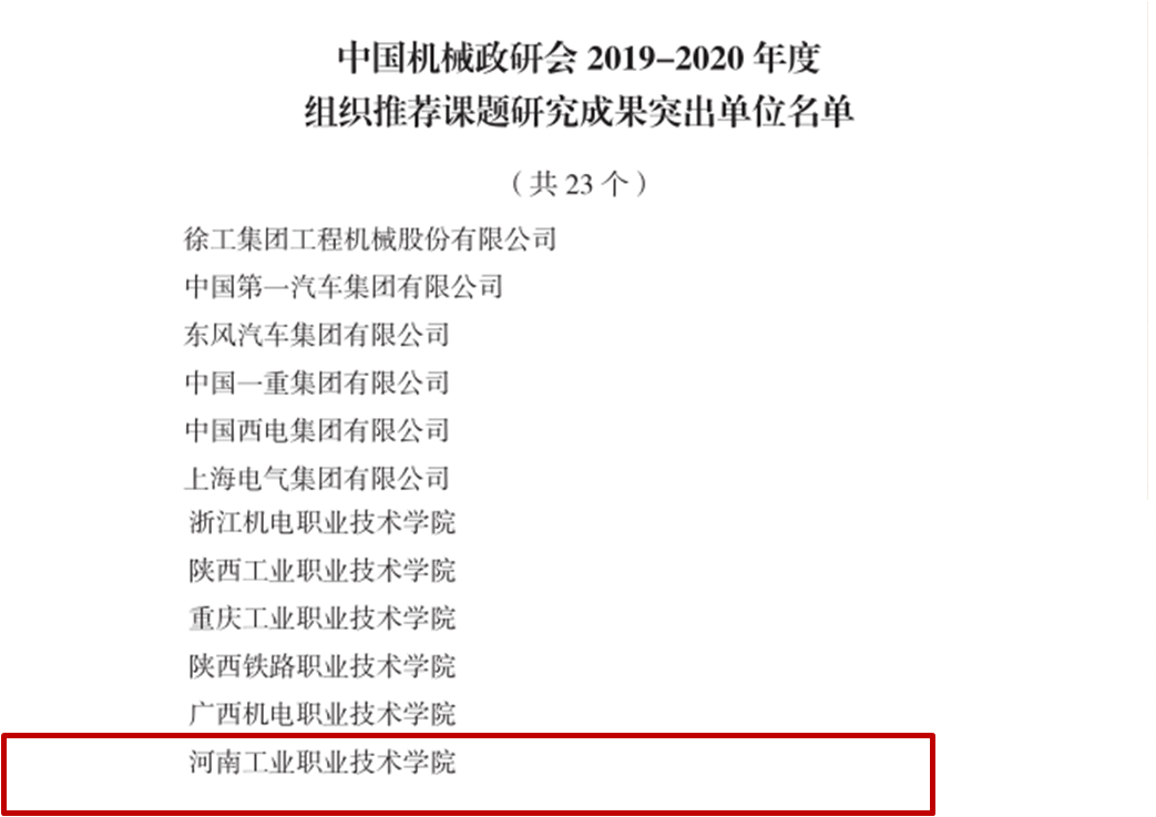 近期,中国机械工业职工思想政治工作研究会(以下简称中国机械政研会)发布了2019-2020年度一、二、三类课题研究成果和组织推荐课题研究成果突出单位的通知,我校获二类课题研究成果1项、三类课题研究成果2项,学校荣获“中国机械政研会2019-2020年度组织推荐课题研究成果突出单位”称号。