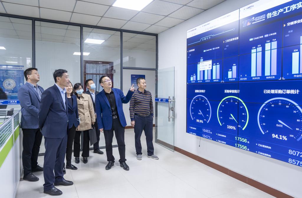 王长怀对王伟校长一行的到来表示感谢,希望校企双方不断拓宽双方合作领域,进一步加强交流与合作,通过共同努力和精诚合作,实现各尽所长,互惠互赢。座谈交流后,与会人员一起参观了一通防爆的工控装配车间、数字加工中心、空调事业部、工业互联网平台和调度中心等生产车间和中心。