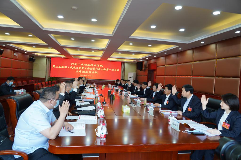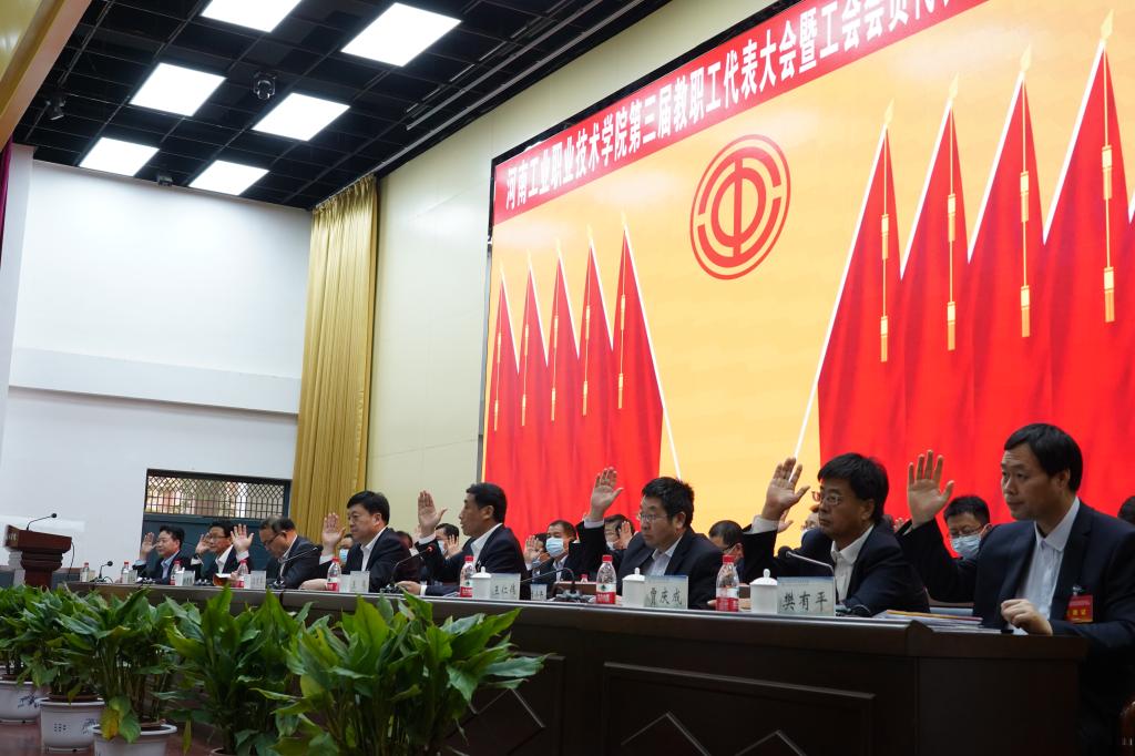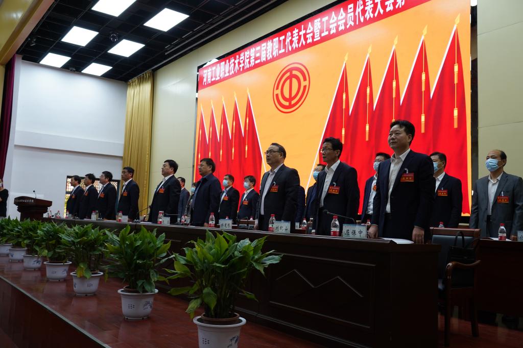 河南工业职业技术学院第三届教职工暨工会会员代表大会第一次会议完成各项议程,在激昂的《国际歌》中胜利闭幕。
