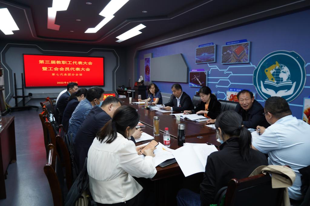 随后,学校领导和各代表团一起审议讨论校长行政工作报告、学校“十四五”事业发展规划和其他报告,对第三届工会委员会、第三届女工委员会和其他候选人建议名单进行酝酿。各位代表们畅所欲言,说成绩、提建议、谋发展、话民生,分析梳理了学校当前发展面临的机遇和挑战,希望全校师生稳中求进、在变局中争取主动,保持追求卓越、争创一流的劲头,高质量完成“十四五”规划年度目标。