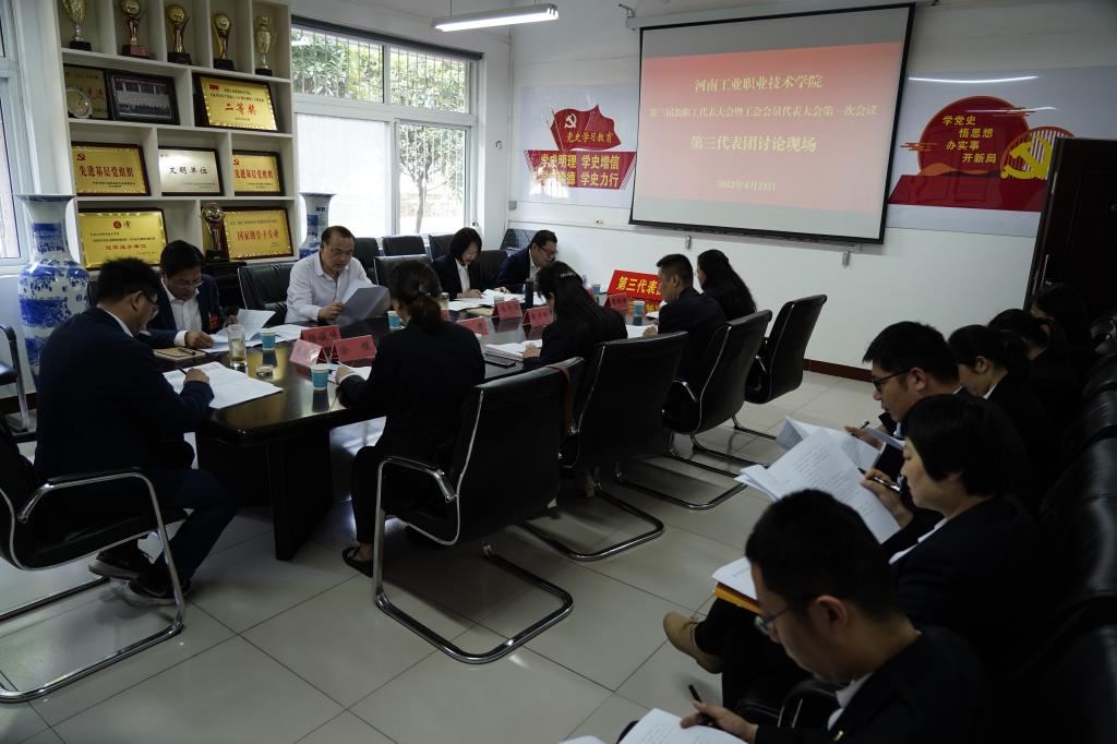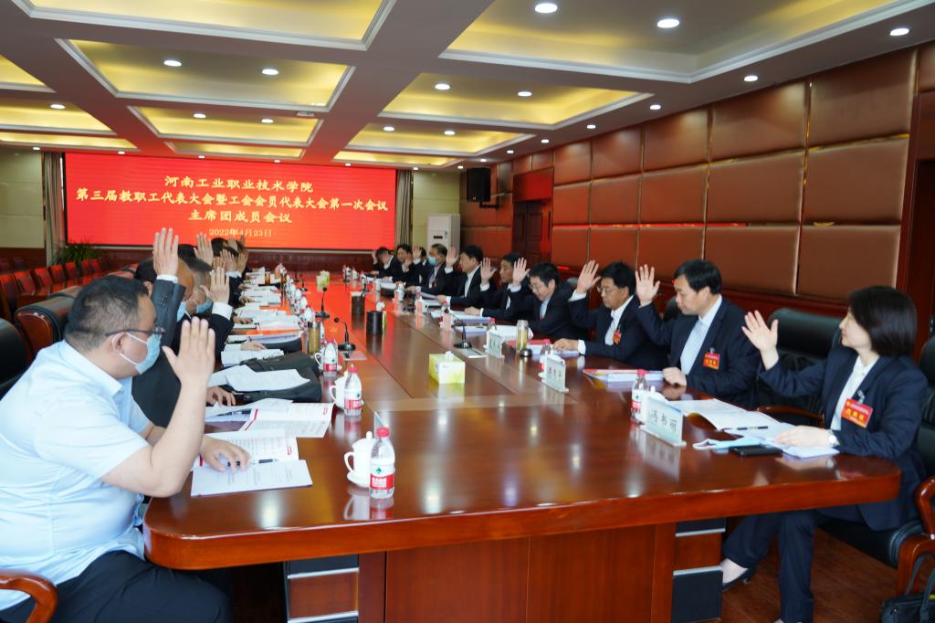 经过分团讨论,下午16点大会主席团全体成员在办公楼四楼召开第二次会议,听取了九个代表团团长对大会五个工作报告、学校“十四五”事业发展规划、学校绩效考核工作实施办法、第三届工会委员会和工会经费审查委员会委员候选人名单、第三届女工委员会和教代会六个专门委员会成员建议名单讨论情况的汇报,讨论并表决《第三届工会委员会和工会经费审查委员会选举办法》(草案)、第三届工会委员会、工会经费审查委员会委员候选人名单(草案)、大会总监票人、监票人建议名单、大会总计票人、计票人建议名单、《河南工业职业技术学院第三届教职工代表大会暨工会会员代表大会第一次会议决议》(草案),均全票通过。