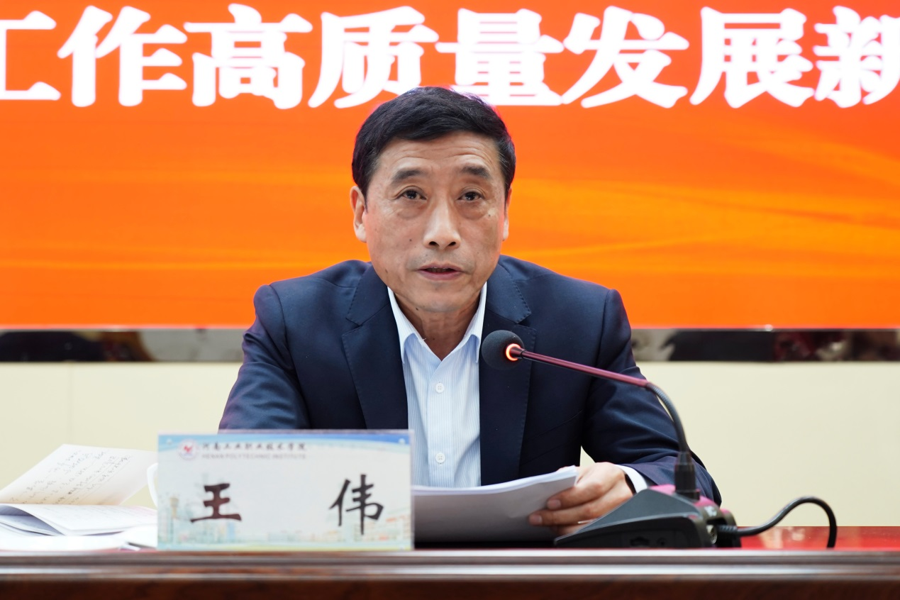 校长王伟肯定了教学工作取得的成绩、积累的经验,就教学工作提出了三点意见。一是认清形势,明确方向,切实增强做好教学工作的责任感和使命感。加强教学工作是贯彻落实习近平总书记关于高校人才培养工作重要讲话精神、准确把握经济社会发展变化对高等职业教育人才培养新需求、学校回应人民接受优质职业教育美好期盼的必然要求。二是突出重点,统筹推进,扎实做好教学工作。抓落实,扎实做好“双高计划”建设及绩效评价工作。抓机遇,扎实推进本科层次职业大学创建工作。抓品牌,深入研究、培育、开拓学校特色亮点。抓质量,持续完善内部质量保障体系。抓管理,着力提升服务学生水平,要贯彻落实好《职业学校学生实习管理规定》。三是加强领导,夯实责任,确保各项工作任务落到实处。要加强理论学习,牢牢把握社会主义办学方向,提高治校办学能力,相关部门要转变作风,创新管理机制,提升服务水平,各教学单位要精心组织,狠抓落实,引导和支持教师进行教学改革,广大教师要真正把教学工作作为事业,把主要精力投入到人才培养工作中去。要建立权责对应、职责明确、奖惩分明的考核激励体系。要及时总结教育教学工作中涌现的先进经验和做法,宣传和推广先进典型,加大表彰和奖励力度。