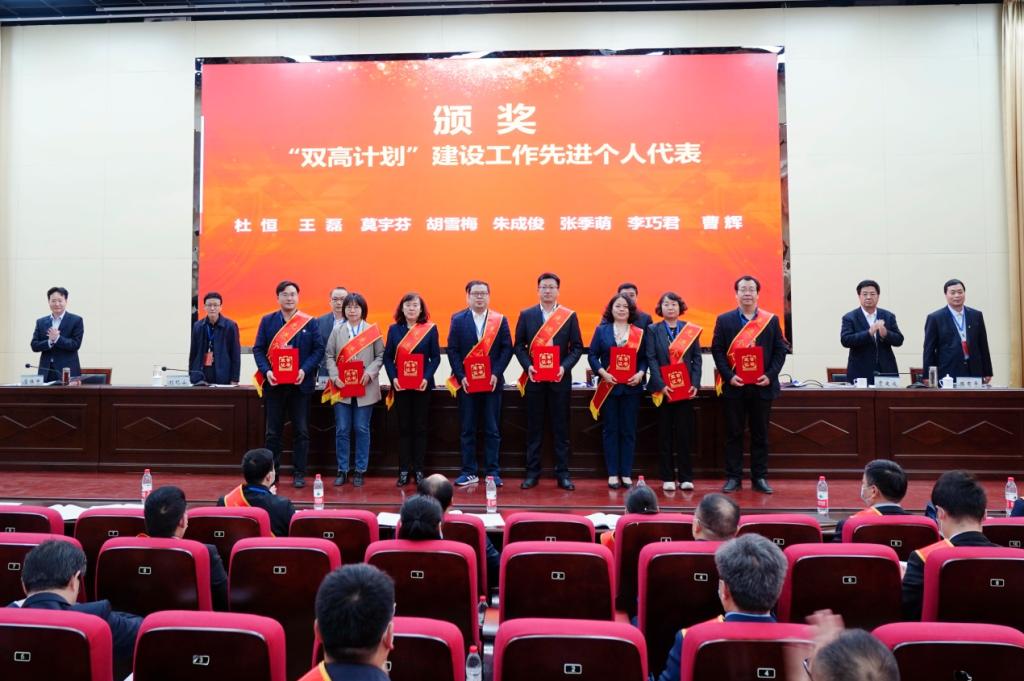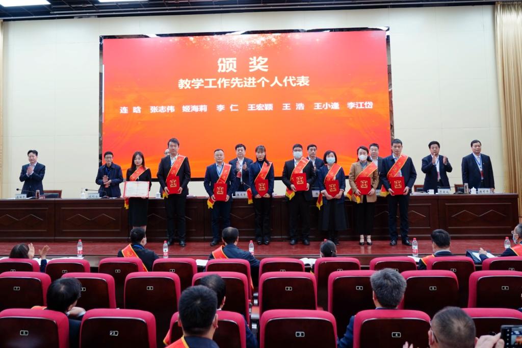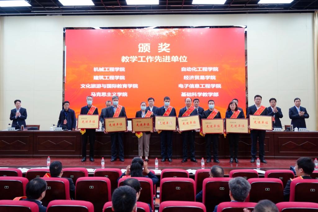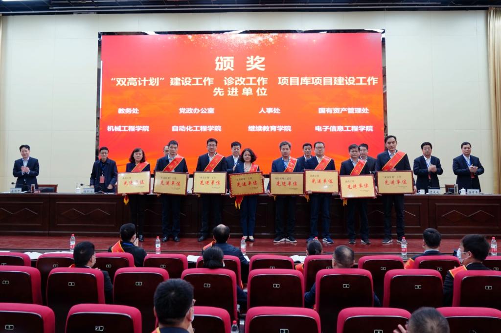 会上,党委副书记杜建根首先宣读了学校《关于表彰教学工作先进单位和先进个人的决定》《关于表彰“双高计划”工作先进单位和先进个人的决定》《关于表彰诊改工作先进单位和先进个人的决定》《关于表彰2021年度项目库项目建设先进单位的决定》,机械工程学院等6个教学工作先进单位,电子信息工程学院等4个专业建设先进单位,建筑工程学院等7个课程建设先进单位,经济贸易学院等6个教研教改先进单位,电子信息工程学院等6个技能竞赛先进单位,教务处等9个“双高计划”建设工作先进单位,党政办公室等8个诊改工作先进单位,人事处等10个项目库项目建设先进单位,丁舒媚等165名教学工作先进个人,丁延松等83名“双高计划”工作先进个人,马迪等80名诊改工作先进个人受到了表彰。校领导为获奖先进单位和先进个人代表颁发了奖牌和荣誉证书。电子信息工程学院院长连晗,建筑工程学院副院长、建筑设计系主任张志伟,电子商务教研室主任姬海莉,自动化工程学院教师李仁在会上作交流发言。