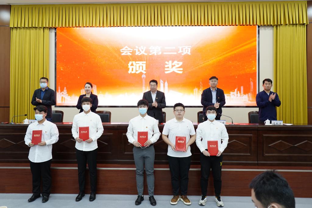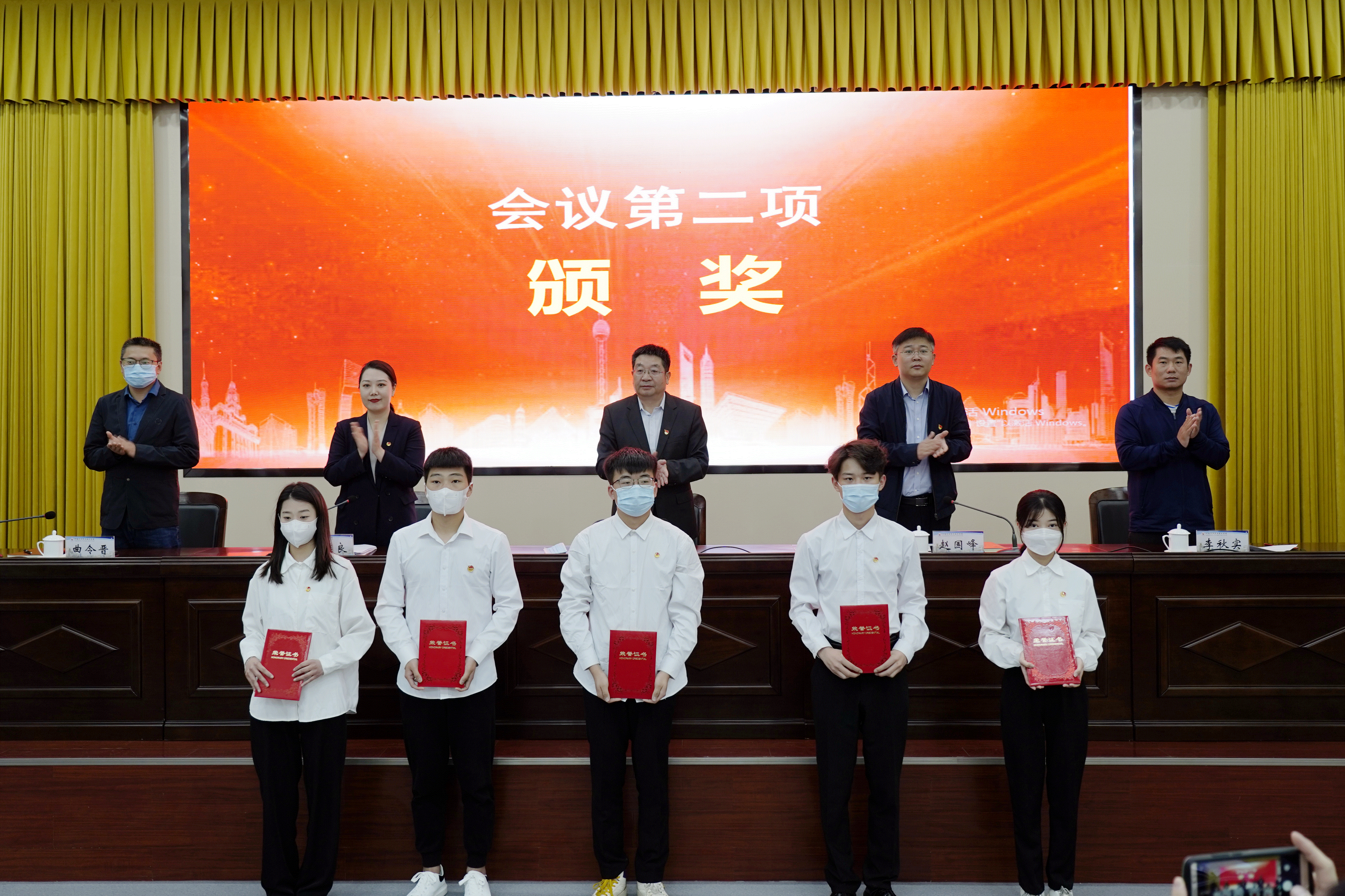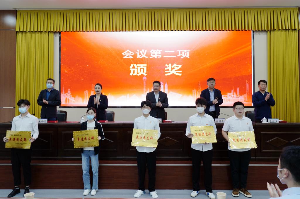 党委学生工作部部长赵国锋宣读了2021-2022学年“五四红旗团总支”、“优秀专职团干部”“青年岗位能手”“先进团支部”“优秀学生团干部”和“优秀共青团团员”的表彰决定。与会领导向先进集体和先进个人颁发了奖牌和证书。机械工程学院团总支书记王旭和计应2006班宋洋同学分别做了典型发言。