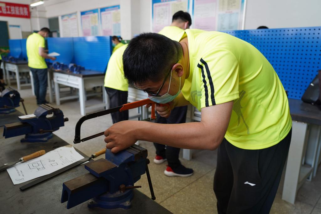 在炎热的实训室内,每一位选手都在争分夺秒地认真加工,时不时地用卡尺和角度尺等量具进行精确测量,努力保证工件的精度。在工业化时代,尽管大多数零件都可以自动化生产了,但是有部分零件还是需要手工打磨,精湛的锉磨手艺也是钳工的必备功夫。该项竞赛要求选手们在4个小时内,通过传统的工具,制作出符合要求的零件。“比赛主要考验选手们的‘精度’和‘速度’。”现场裁判老师介绍,钳工作为国内企业从业数量最多的工种,优秀的钳工不仅需要良好的动手能力,头脑的灵活也十分重要。“精度”上的要求也非常严格,选手们制作的零件,任意位置精度不够,都将会直接影响零件使用,导致总成绩扣分。“实际上,长达4个小时的比赛,体力也是选手们必须要面对的问题,就像跑马拉松一样,到最后体力不济时,选手们需要有顽强的意念来支撑完成比赛。”