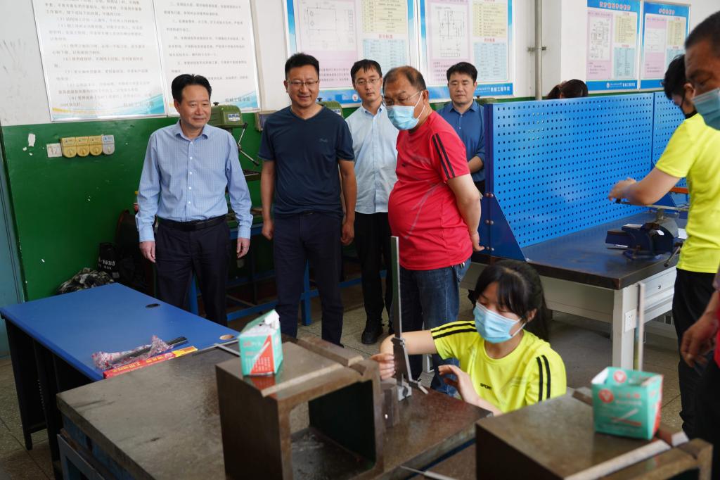 为了大力弘扬劳模精神、劳动精神、工匠精神,检验相关专业教职工的实践操作技能,5月6日下午,由校工会主办、机械工程学院承办的“中国梦•劳动美——喜迎二十大建功新时代”学校第五届教职工钳工技能竞赛在北实训楼S1223和S1225钳工实训室举行。学校党委委员、工会主席屈保中在工会副主席王爽、机械工程学院院长朱成俊陪同下到比赛现场指导,详细询问劳动技能竞赛的有关情况,为所有参赛的教职工加油鼓劲。