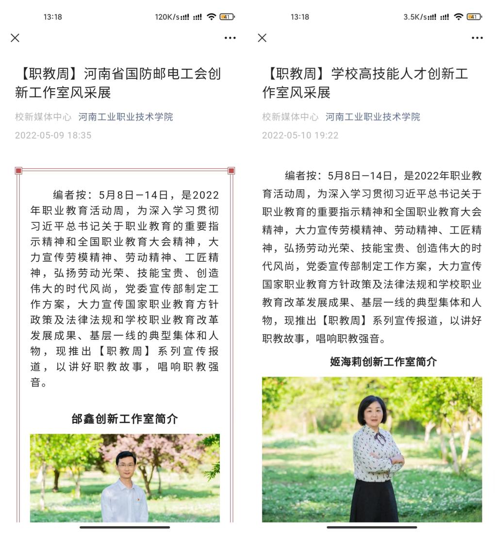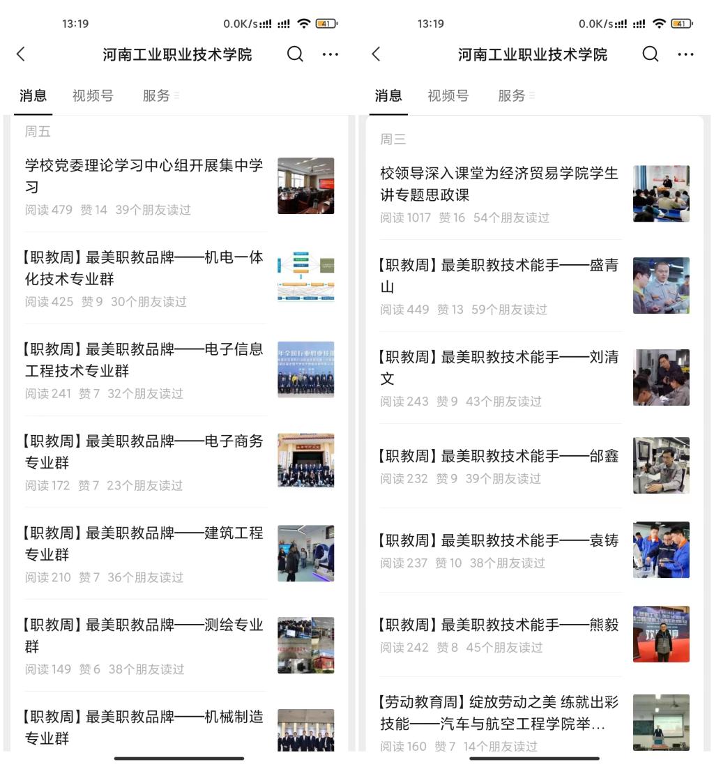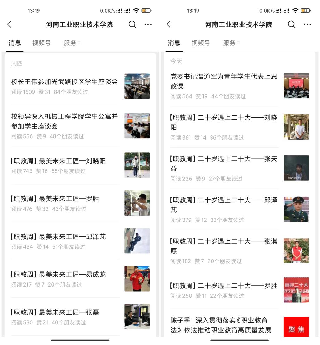 为弘扬劳动光荣、技能宝贵、创造伟大的时代风尚,结合河南省教育厅开展“最美职教技术能手”“最美未来工匠”“最美职教品牌”等系列宣传活动的通知,学校遴选了5位“最美职教技术能手”、5位“最美未来工匠”、6个“最美职教品牌”、10位“二十岁遇上二十大”优秀青年学生代表,5月8日至15日通过校内校外媒体开展宣传推介,充分展示我校教师过硬的综合素质、学生蓬勃向上的精神风貌和具有鲜明职教特色的专业群,发挥榜样的引领示范作用,进一步坚定学生“技能成才 强国有我”的信念。