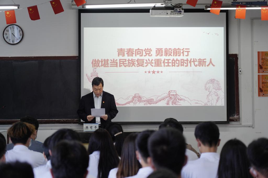 王伟强调,新时代赋予新使命,新征程呼唤新作为,青年大学生要成为堪当重任的时代新人。王伟指出,青年是时代最灵敏的晴雨表,新时代中国的发展进步,如同一堂堂生动而深刻的“大思政课”,每一个奇迹的创造,每一个难关的跨越,都在坚定青年对党的爱戴与忠诚、对中国道路的认同、对民族复兴前景的信心。广大青年要更好地读懂中国、把握未来,要用脚步丈量祖国大地,以青春扎根基层,担实责、笃实干、创实绩;用眼睛发现中国精神,以青春放飞理想,强信仰、强信心、强信念;用耳朵倾听人民呼声,以青春服务群众,察民情、纾民困、暖民心;用内心感应时代脉搏,以青春奉献家国,立大志、成大才、担大任。新时代的大学生应该把对祖国血浓于水、与人民同呼吸共命运的情感贯穿学业全过程、融汇在事业追求中,在青春的赛道上奋力奔跑,争取跑出当代青年的最好成绩。