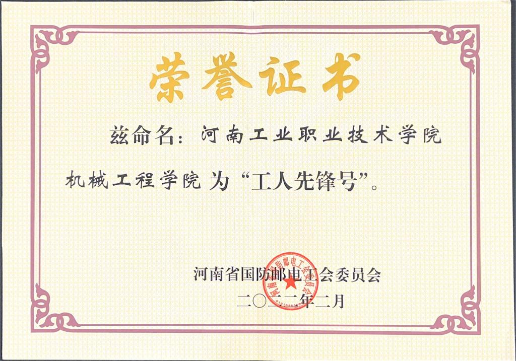 近日,河南省国防邮电工会下发《河南省国防邮电工会委员会关于表彰2021年先进集体和先进个人的决定》(豫国邮工〔2022〕20号),我校党委书记温道军同志被授予“职工之友”荣誉称号,校工会被授予“工会工作先进单位”荣誉称号,机械工程学院被授予“工人先锋号”(综合表彰类)荣誉称号,数控技术教研室被授予“工人先锋号”(“六型”示范班组类)荣誉称号。