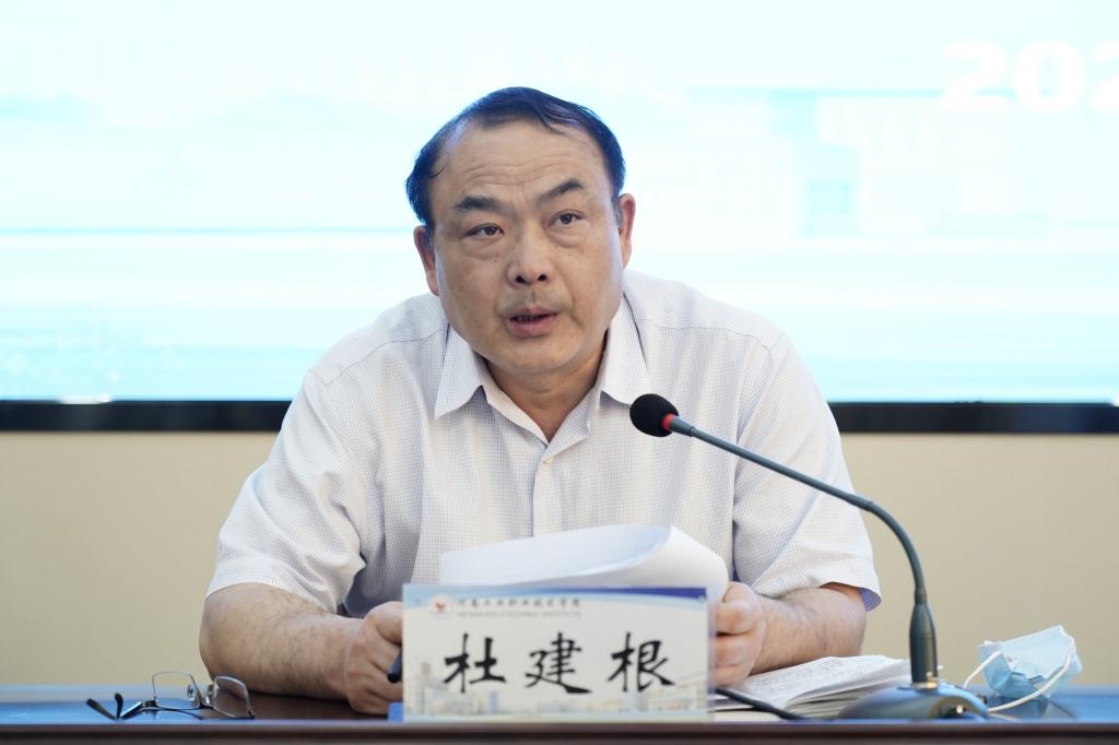 党委副书记杜建根指出,要清醒认识学校疫情防控工作存在的问题,并就切实落实好疫情防控各项措施提出九点要求,一是各单位、各部门要认真学习传达落实好本次视频会议精神和省教育厅领导的讲话要求,近期对全校师生员工进行一次安全教育;二是放假前要对校园进行一次全方位的安全排查,对存在的安全隐患要及时整改;三是精准掌握每一位师生员工的轨迹和健康状况,着实落实好重点人员管控;四是严格落实校园闭环管理,加强校园巡查力度;五是针对专升本返校和假期留校参加技能大赛的学生,要制定好相应的疫情防控的专项措施;六是加强值班值守和落实好三级值班制度;七是做好物资储备校园服务,保证在校学生学习、生活、考试期间平稳有序、安全稳定;八是加强舆论管控和教育引导,做好学生的思想政治教育、心理疏导和人文关怀工作;九是及早谋划假期工作和下学期开学工作,各单位、各部门要统筹做好日常工作、重点工作,确保高标准、高质量完成目标任务。