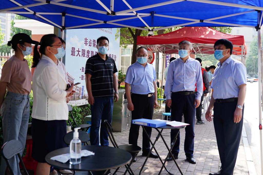 在光武路校区,王伟一行先后深入迎接现场、学生公寓、餐厅等地,听取有关负责同志关于专升本学生返校准备工作的情况汇报,详细了解各项工作流程设置,认真查看了用电用水、消毒清洁、应急保障等设备设施运转情况,要求相关单位做好常态化疫情防控的同时,加强对学生的人文关怀,做到教育引导有力度,服务保障有温度,确保学生平安返校、顺利考试。