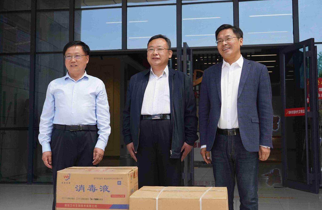 会上,庞渝、杨俊峰共同为学校新时代文明实践服务基地揭牌,并向邓州市新时代文明实践中心捐赠了防疫物资。