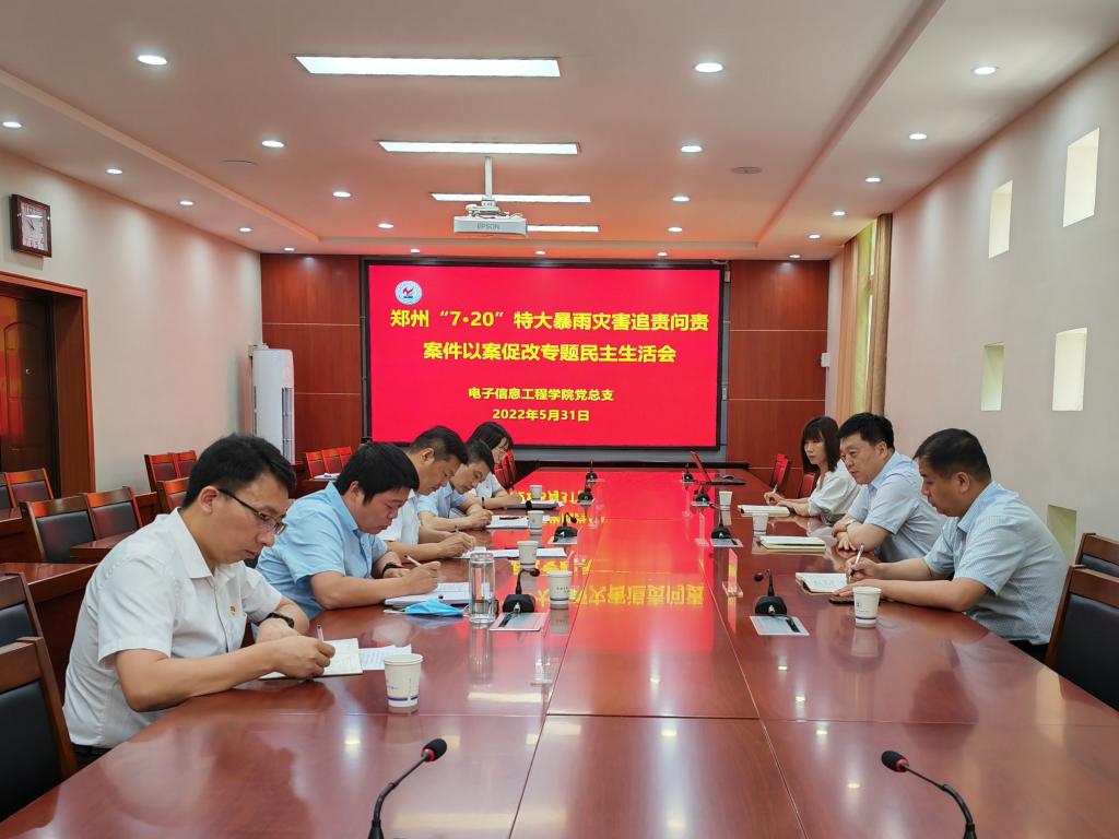 5月31日上午9点,电子信息工程学院党总支在学院会议室召开郑州“7·20”特大暴雨灾害追责问责案件以案促改专题民主生活会,党委书记温道军参加会议并指导工作,专题民主生活会督导组成员周大鹏、魏爽陪同,电子信息工程学院党总支全体委员参加会议,会议由学院党总支书记朱昭主持。