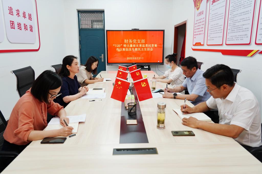 根据学校《“7·20”特大暴雨灾害追责问责案件以案促改专题民主生活会方案》的相关要求和安排部署,5月31日上午财务党支部在财务处会议室召开专题民主生活会。学校校长王伟到会指导并讲话,学校督导组成员杨俊峰、苗苗陪同,财务党支部书记程淑华主持会议。