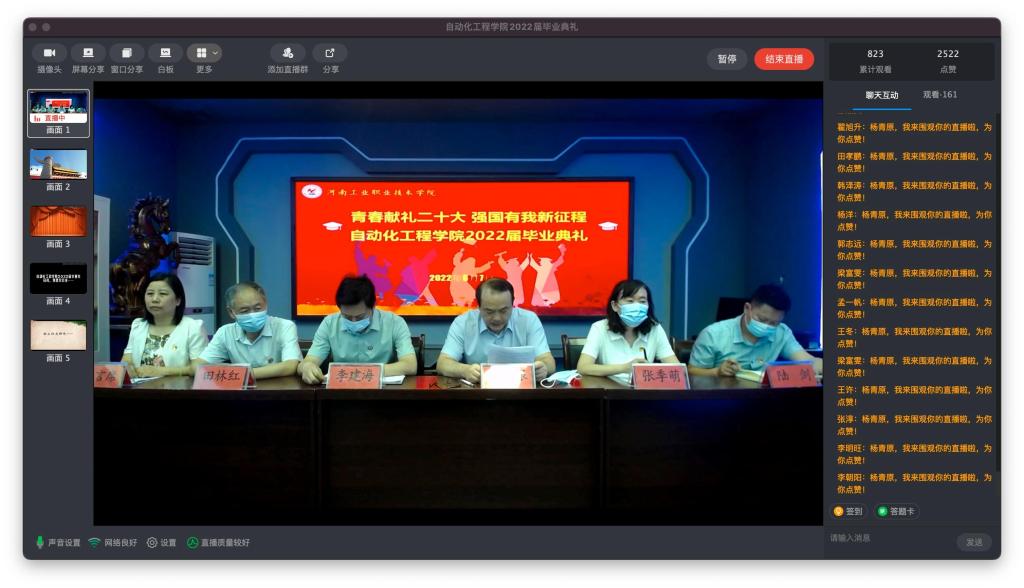 “三载励志成才,一朝鲲鹏展翅”。6月7日上午九点,自动化工程学院“青春献礼二十大 强国有我新征程”2022届毕业生毕业典礼在学院会议室2222隆重举行。校党委副书记杜建根、自动化工程学院院长张季萌、党总支副书记李建海、副院长田林红、陆剑、辅导员老师、毕业班班主任及2022届毕业生代表参加了毕业典礼。