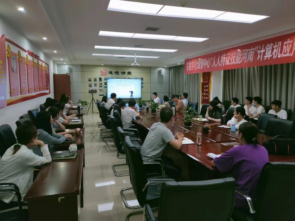 为深入贯彻落实《河南省教育厅河南省人力资源和社会保障厅关于印发<河南省教育系统落实“人人持证、技能河南”建设工作任务实施方案>的通知》精神要求,经继续教育学院与南阳市数字化城市管理监督指挥中心积极对接,南阳市数字化城市管理监督指挥中心“人人持证 技能河南”计算机应用技术培训于6月7日在南阳市数字化城市管理监督指挥中心顺利开班。指挥中心党支部副书记韩明、副主任马勤瑞、办公室主任卢亚珂、学校相关部门教师及40余名学员参加了开班仪式。