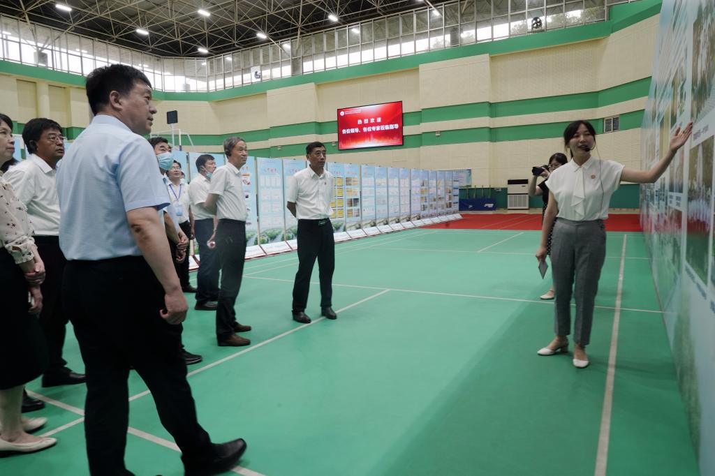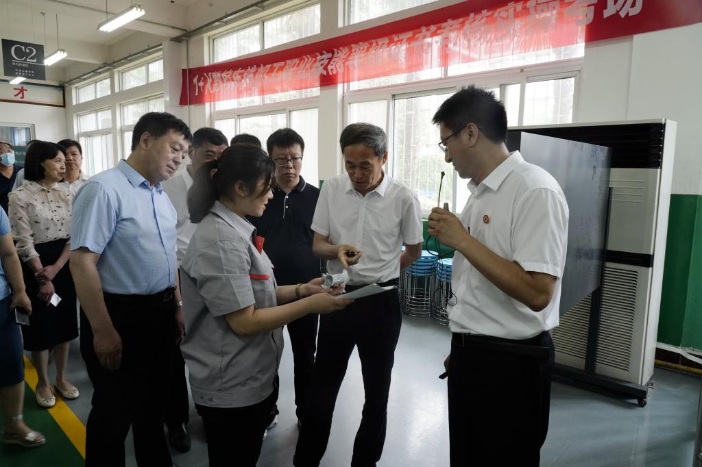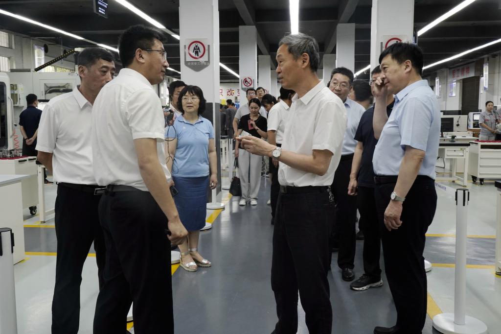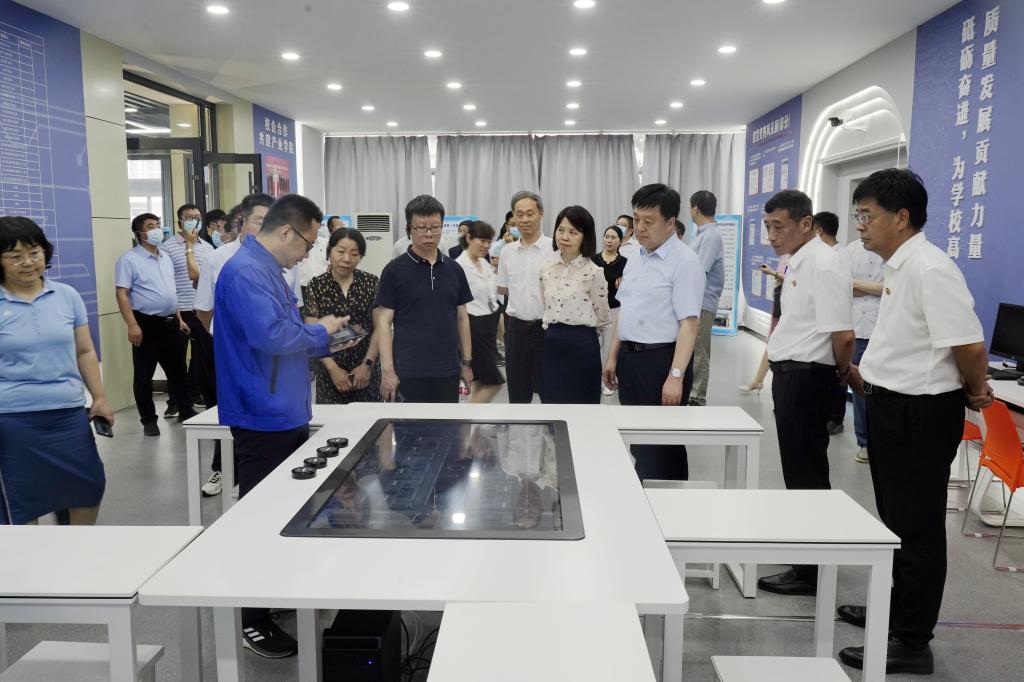汇报会后,考察组现场核查了学校“双高计划”中期绩效资料,参观学校“双高计划”中期建设成果展,实地察看了机电一体化技术专业群实训基地。