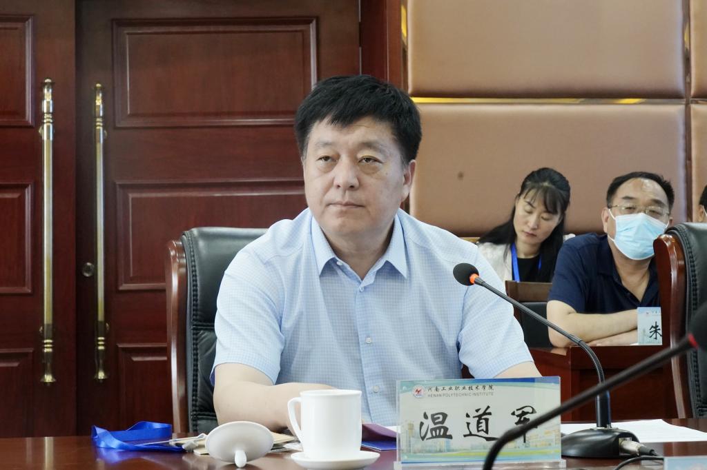 6月23日上午,河南省国家“双高计划”中期绩效评价考察组莅临我校,对学校国家“双高计划”中期绩效评价进行实地考察。汇报会在孔明路校区办公楼第四楼会议室举行,省教育厅职成教处二级调研员史文生,省财政厅教育处副处长于沂,省教育厅职成教处主任王真真,特聘专家、郑州铁路职业技术学院教授华平,专家组组长、黄河水利职业技术学院副校长焦爱萍及专家组全体成员出席,平顶山工业职业技术学院、河南交通职业技术学院、河南经贸职业学院列席,学校领导温道军、王伟、杜建根、王仁伟、贾庆成、屈保中及有关部门负责同志参加会议。会议由学校党委书记温道军主持。