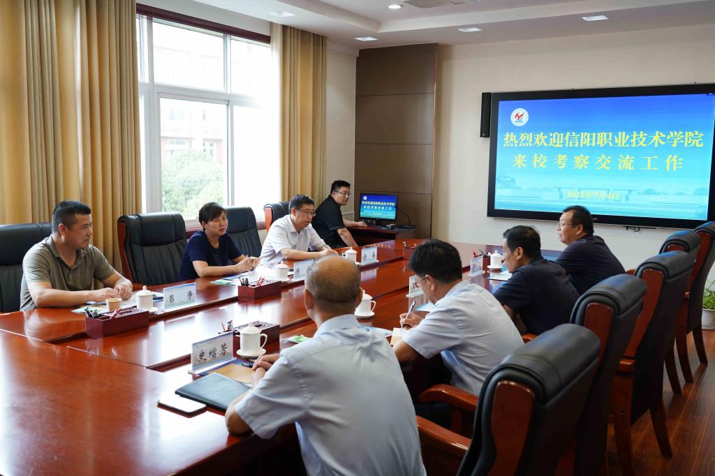 7月4日下午,信阳职业技术学院校长郑云、教务处处长余磊、汽车学院院长吕争一行3人来我校考察交流工作。学校校长王伟、副校长贾庆成出席,教务处、汽车与航空工程学院负责人参加。