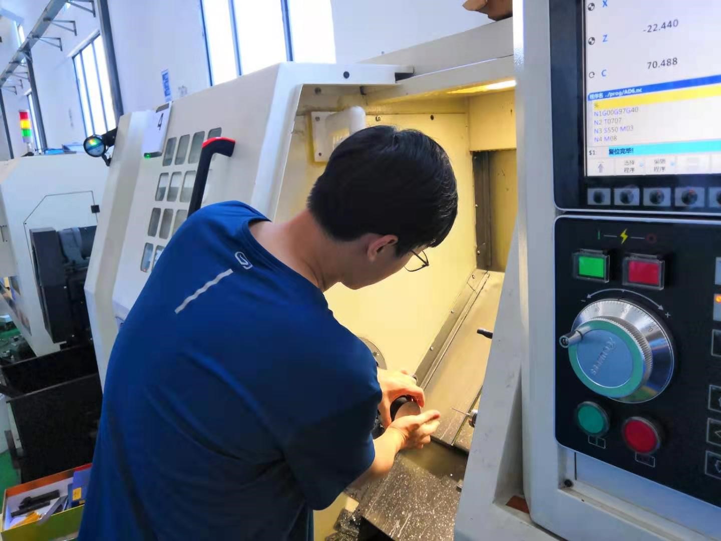 为了确保在比赛中万无一失,该同志积极参加拉练比拼,多次模拟真实比赛现场情况,在拉练中熟悉流程、锻炼心态,通过与其他强队的比拼及时发现自身不足,第一时间进行强化提升。为了解决内孔加工完表面光洁度低的问题,他们先是通过网络查询修改加工工序,发现问题依然无法解决后立即联系校内相关专业的资深教师进行参数优化与调整,最终在多方努力下找到了问题的根源,调整了用来加工的刀具刀尖角度,解决了困扰两人多天的疑惑。在经历了多轮“魔鬼式”的艰辛磨砺后,他所在的团队终于从一开始的手忙脚乱到最后的从容自信稳步递进。