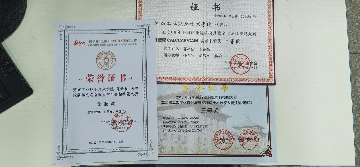 技能竞赛是提升专业水平最直接有效的途径。为了让自己早日成为行家里手,刘清文同志积极参加学校各项技能竞赛,并取得了不菲的成绩,代表河南省参加了全国数控技能大赛的计算机软件产品检验员赛项。为了迅速地掌握比赛用机床和软件的操作技能,该同志每天早早就到车间现场练习,中午更是顾不上吃饭进行强化练习,直到深夜车间锁门方才结束现场练习回到住处,继续对自己练习的内容进行复盘,分析设计工艺的合理性,寻求更优方案,遇到自己解决不了的“卡口”“难关”,该同志不屈不挠,向校内专家请教,跟厂里技术连线,线上线下同指导、共发力,最终获取最优的加工参数。通过不懈的学习和刻苦的钻研,该同志迅速掌握了比赛用的华中数控机床、斯沃仿真系统、中望3D、中望CAE、开目PDM等软件的操作技能。