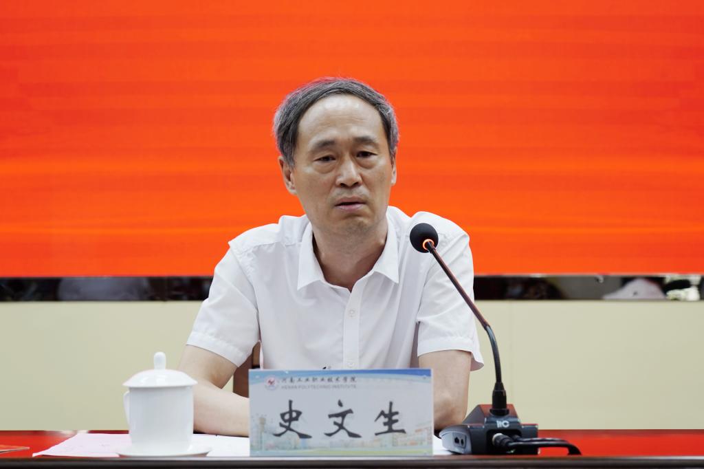 史文生在讲话中,代表主办单位河南省教育厅、河南省教育厅职成教处对各高职院校参赛选手的到来表示热烈的欢迎,对学校精心筹备和周密细致的组织表示感谢。他指出,高职教育教学能力大赛是推动职业教育高质量发展的重要举措,大赛的举办为广大教师提供了一个公平的、高质量的、展示与提升教师教育教学能力的平台,受到高职院校和教师的高度重视。此次大赛不仅是“公平而有质量”的赛场,更重要的是为大家提供了一个“相互交流、相互促进、共同提高”的平台,希望各参赛教师珍惜宝贵的参赛机会,在比赛中取得更好成绩。