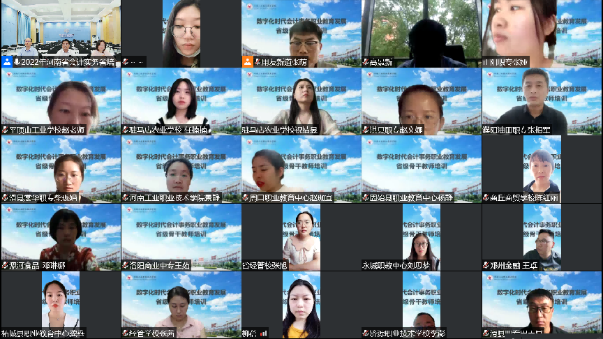 7月11日上午,“河南省职业院校骨干教师‘数字化时代会计事务职业教育发展’省级培训”线上开班仪式在我校孔明路校区图文信息楼T1126举行。副校长贾庆成、经济贸易学院院长张延泰、继续教育学院副院长于玲、新道科技股份有限公司高级教育规划顾问高景新及来自全省25所中等职业院校的30名教师参加了云开班仪式。开班仪式由于玲主持。