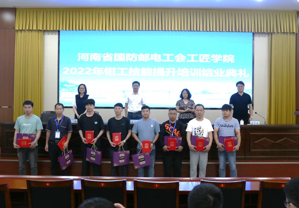 7月18日上午,为期8天的河南省国防邮电工会工匠学院2022年钳工技能提升培训结业典礼在我校举行。机械工程学院院长朱成俊,继续教育学院院长莫宇芬、副院长于玲、市场开发部主任刘宇通出席典礼。典礼由刘宇通主持。