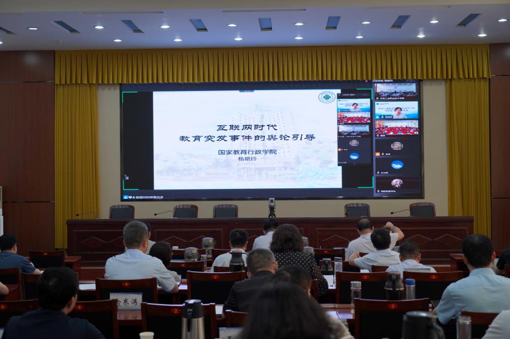 国家教育行政学院高校管理部主任杨艳玲做题为《互联网时代教育突发事件的舆论引导》的专题报告