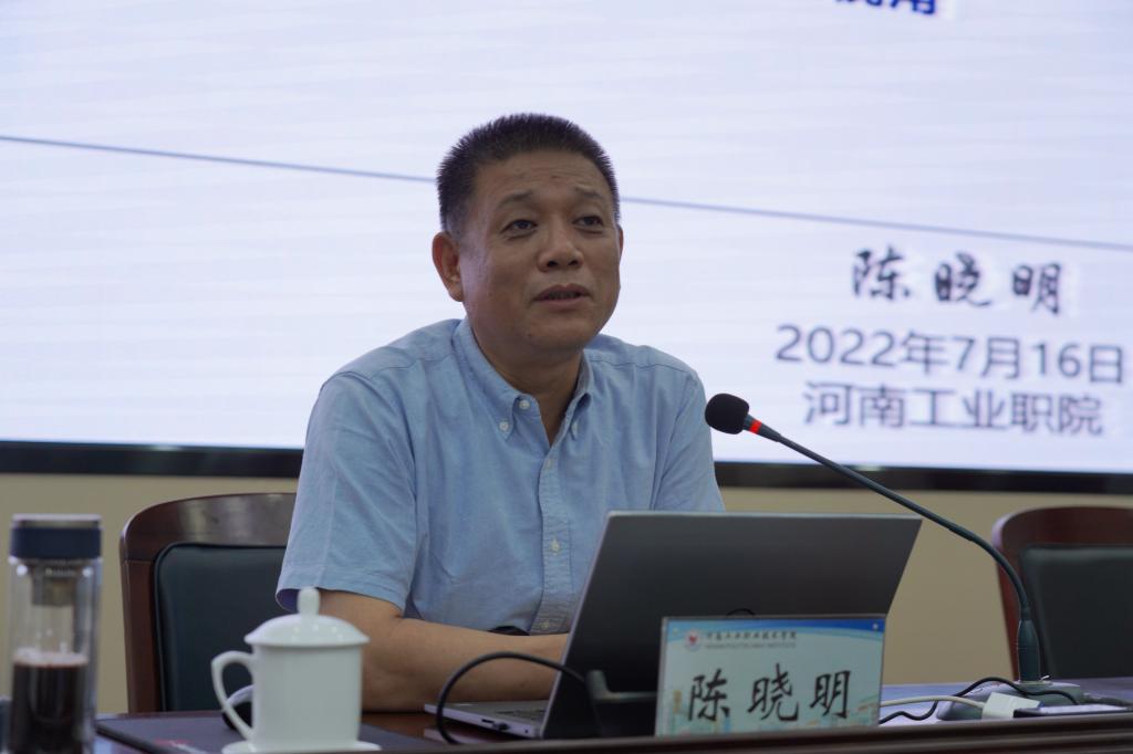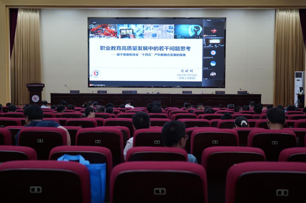 7月16日下午,学校特邀机械工业教育发展中心陈晓明主任到校做专题辅导报告。校领导温道军、王伟、杜建根、王仁伟、刘纪山、李荣胜、屈保中、樊有平及全体中层干部、骨干教师代表共200余人参加报告会。报告会由校长王伟主持。