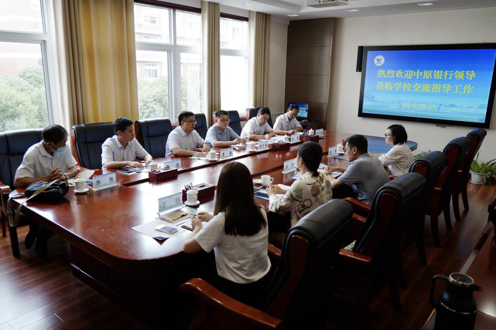 7月26日上午,中原银行南阳分行行长曹兵、副行长张方涛一行6人到我校交流工作。学校校长王伟出席,财务处相关负责人参加交流会。