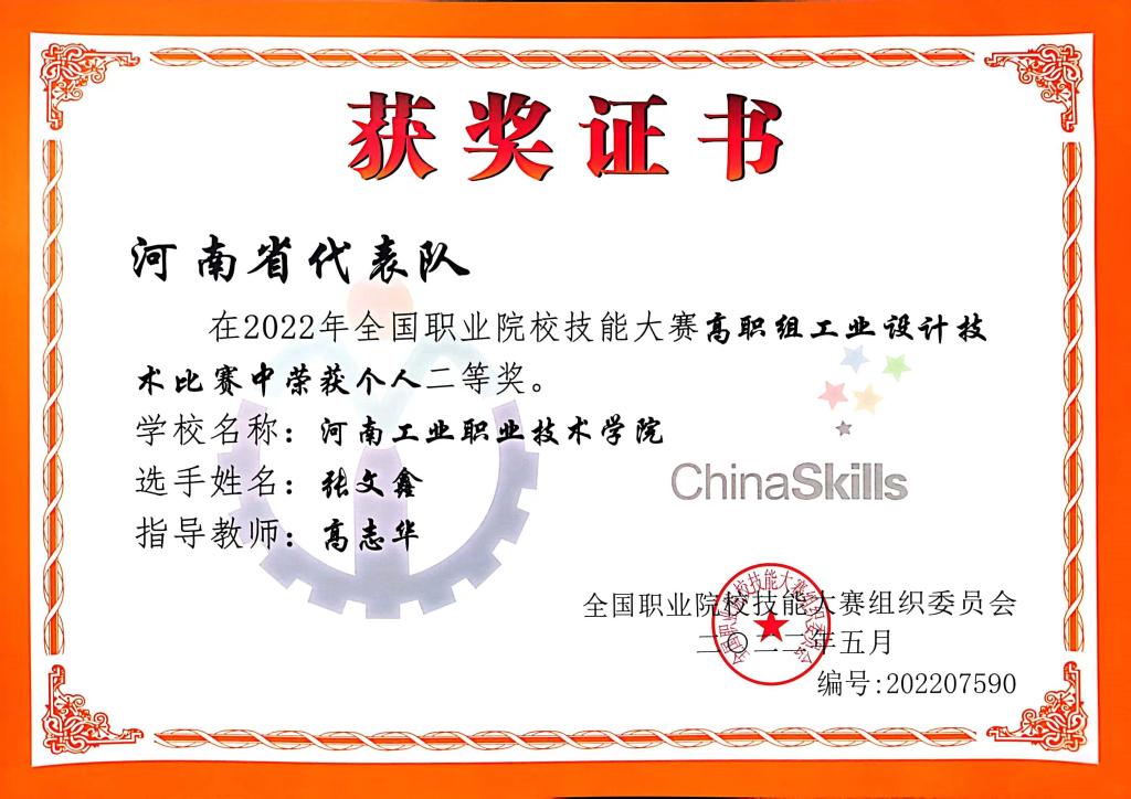 2022年8月19日至22日,2022年全国职业院校技能大赛高职组“工业设计技术”赛项在济南职业学院举行,来自全国的55支代表队参赛。机械工程学院导师制2001班学生张文鑫作为河南省代表队参加此次国赛,斩获二等奖。