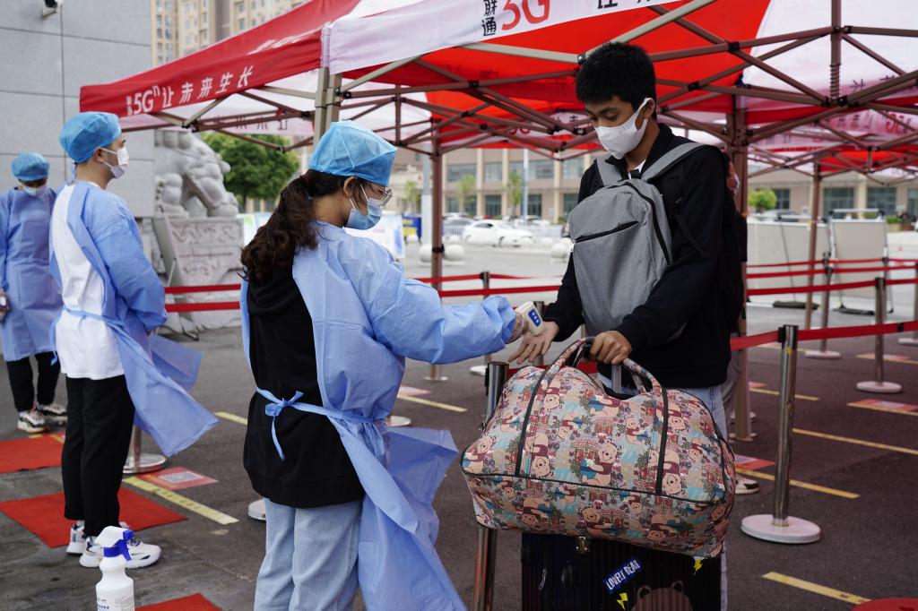 在孔明路校区,党委书记温道军与返校学生亲切交流,详细询问同学们的假期生活、新学期的学习计划等,叮嘱同学们返校后要继续做好个人防护,密切配合学校做好疫情防控。同时,温道军认真查看学生进校身份核查、“双码”查验、体温检测、行李消杀等流程,要求各岗位工作人员要本着对师生生命安全高度负责态度,认真贯彻执行学校关于疫情防控和学生返校开学的各项决策部署,严格落实“场所码”扫描登记制度,守好校园安全防控的第一道防线,保证学生返校平稳顺利。
