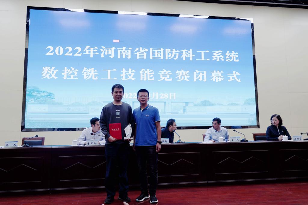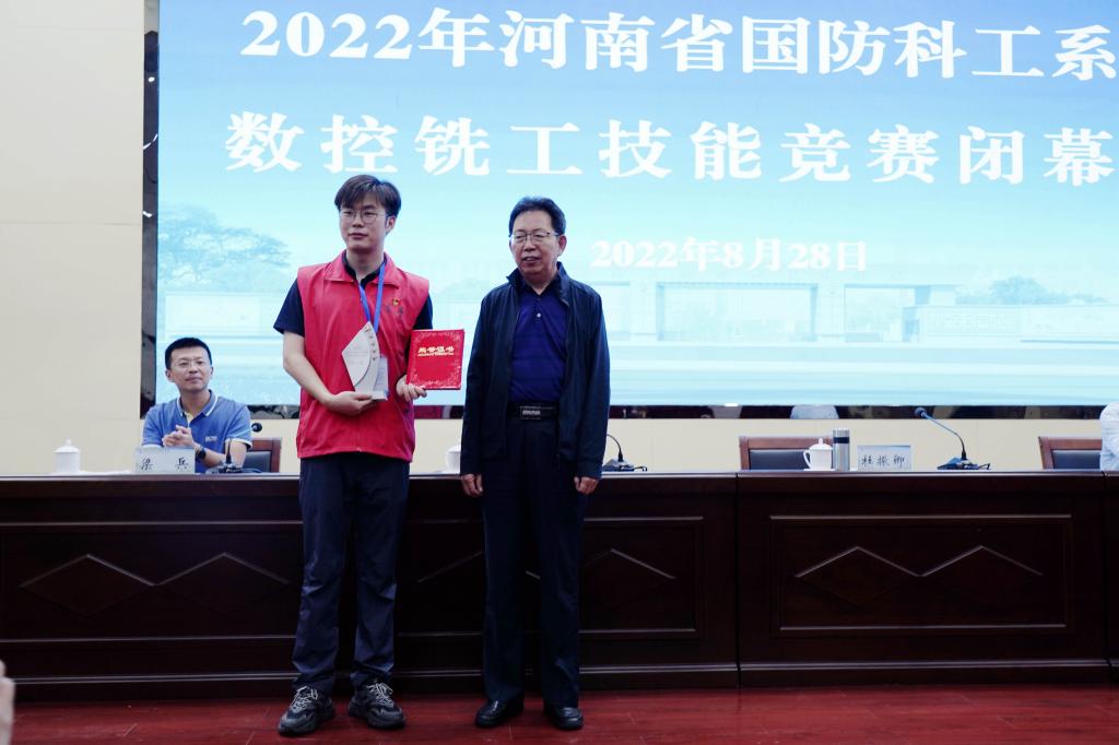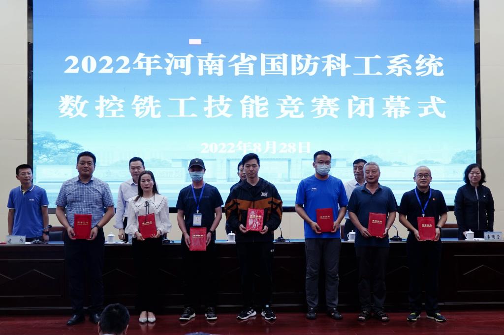 在闭幕式上,裁判长梁兵宣布了数控铣工技能竞赛成绩,李陶营宣读了表彰决定,授予中国空空导弹研究院马凯凯同志金奖、河南平原光电有限公司姚宏永同志银奖、新乡航空工业(集团)有限公司赵永强同志铜奖。授予中国空空导弹研究院、河南平原光电有限公司、新乡航空工业(集团)有限公司、郑州飞机装备有限责任公司、河南北方星光机电有限责任公司、中国航空工业集团公司第六一三研究所、南阳向东机械工业有限公司、中光学集团股份有限公司、河南航天工业有限责任公司、河南工业职业技术学院等10个单位优秀组织奖。