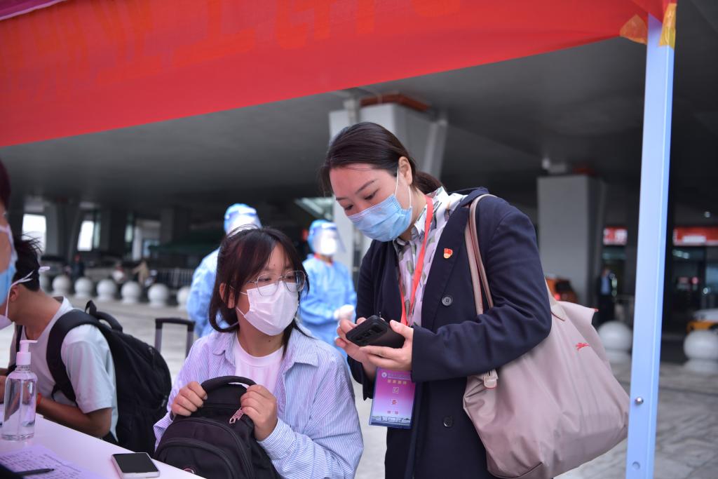 “你好,我是迎新工作的志愿者,请问有什么可以帮助你的吗?”志愿者同学们热情洋溢地对新生说道。在南阳火车站、汽车站、高铁站,迎新志愿者在上车前对所有乘车新生进行测温,查验核酸检测阴性证明、行程码、健康码。校园里的迎新志愿者奔走在校园道路和各个角落,为新生指引方向,协助新生搬运行李,耐心地为新生们答疑解惑,帮助他们完成报到手续,尽快了解和适应学校环境。