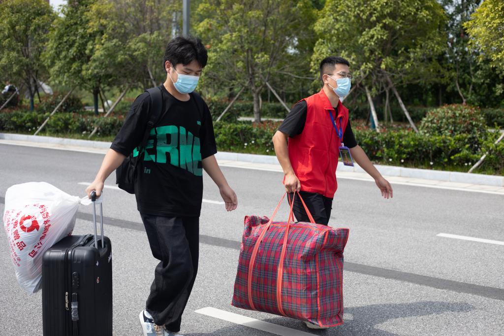 2022级的一名新生开心地说:“来报到之前,就看了校新媒体的直播,家长本来还担心自己的行李太多拿不动,到了校门口就有志愿者帮忙搬运行李、现场引导,很快就办完了手续。”