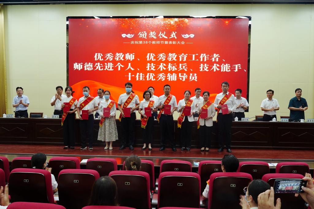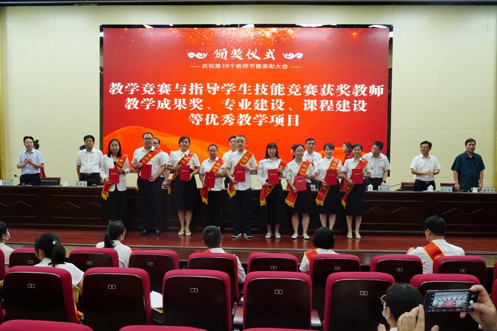 9月8日下午,学校在孔明路校区大学术报告厅举行庆祝第38个教师节暨表彰大会,表彰一年来在教书育人、管理育人、服务育人和教育教学改革、技能竞赛中做出突出贡献的先进集体和先进个人。学校领导温道军、王伟、杜建根、王仁伟、贾庆成、李荣胜、屈保中、樊有平出席会议,优秀教师、优秀教育工作者代表和师生代表200余人参加会议,会议由校党委书记温道军主持。