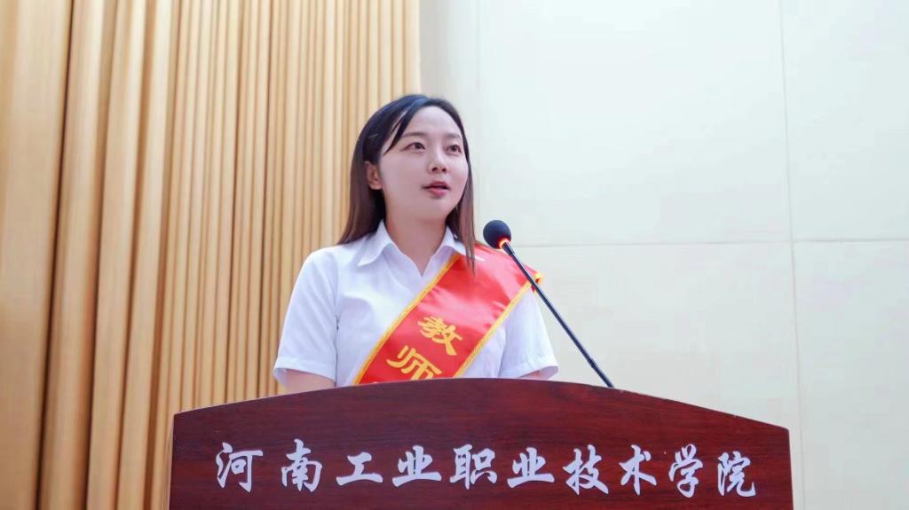 校党委副书记杜建根宣读了军工系统、学校关于2021-2022学年优秀教师、优秀教育工作者、师德先进个人和十佳优秀辅导员的表彰决定;副校长贾庆成宣读了学校2021-2022学年教学优秀项目及教师的表彰决定;工会主席屈保中宣读了学校2021-2022学年技术标兵、技术能手、教职工技能竞赛的表彰决定。与会领导向优秀教师和优秀教育工作者代表、教育教学改革优秀成果和项目代表、技术标兵和技术能手代表颁奖。教师代表任越美老师和辅导员代表朱源源老师发言。