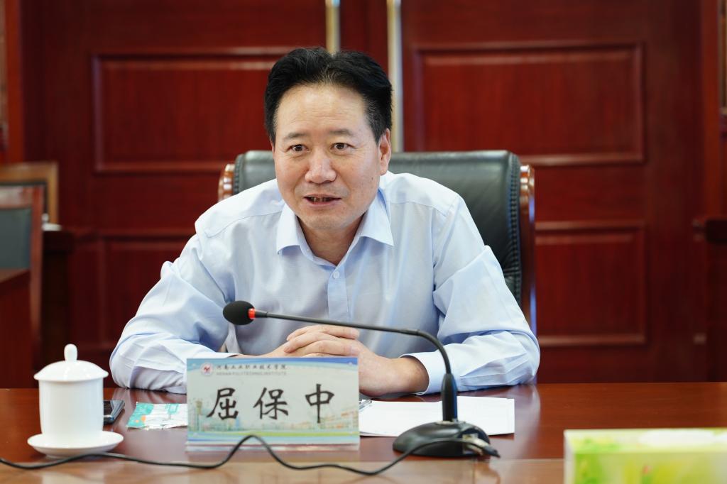 屈保中代表学校对李恒坤、范军、王建伟一行的来访表示热烈欢迎,并介绍了学校的发展历程和科研、产教融合工作的基本情况。相关处室和学院负责人分别对学校科技服务、校企合作、师资建设、人才培养等工作进行了汇报。
