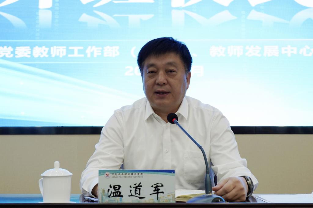 温道军指出,教师是学校事业发展的重要基石,青年教师代表着学校的美好未来。他向大家提出了四点期望:一是对党忠诚、立德树人。要坚持社会主义办学方向、坚持职业教育发展理念,牢记为党育人,为国育才的初心和使命,努力培养社会主义建设者和接班人。二是转变角色、尽快适应。以积极的心态直面工作中遇到的困难,经受得住历练、痛苦、徘徊,才能奋进、向上、成才,成为可堪大任的时代青年。三是深入学习、提高能力。志存高远,应利用好平台、机遇,努力提升教学和科研基本功,以高质量职业本科大学教师的标准定位和要求自己。四是守住底线、积极向上。加强师德师风,做好廉洁自律,维护好风清气正的教育教学环境。