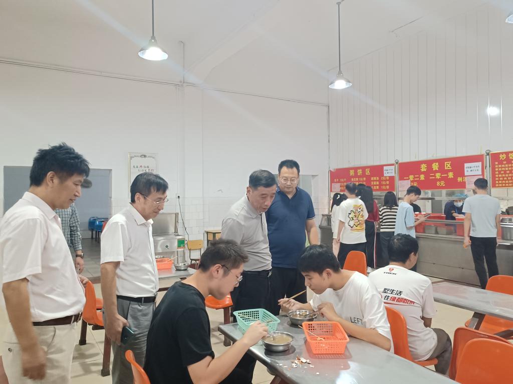 会后,王伟在相关单位的陪同下,先后来到校园环境提升项目施工现场、校园餐厅和浴池、学生宿舍等地实地查看,慰问值班值守工作人员。在项目施工现场,要求加快推进施工进度,力争早日完成,为广大师生提供一个安全、舒适的生活学习环境;在校园餐厅和浴池,与就餐学生亲切交流,询问饭菜是否可口、价格是否稳定,询问工作人员洗澡开放时间、水温、是否拥挤、学生有什么意见,要求注意服务细节,以学生为中心,为在校师生提供更好的服务;在学生宿舍,与学生亲切交谈,拉拉家常,问问同学们哪里人、假期怎么度过,学习、生活有什么困难,并提醒假期离校不能离开南阳城区、出门做好疫情防护等,学生感受到了校长、师长关怀,同时也感受到家长般的温暖。