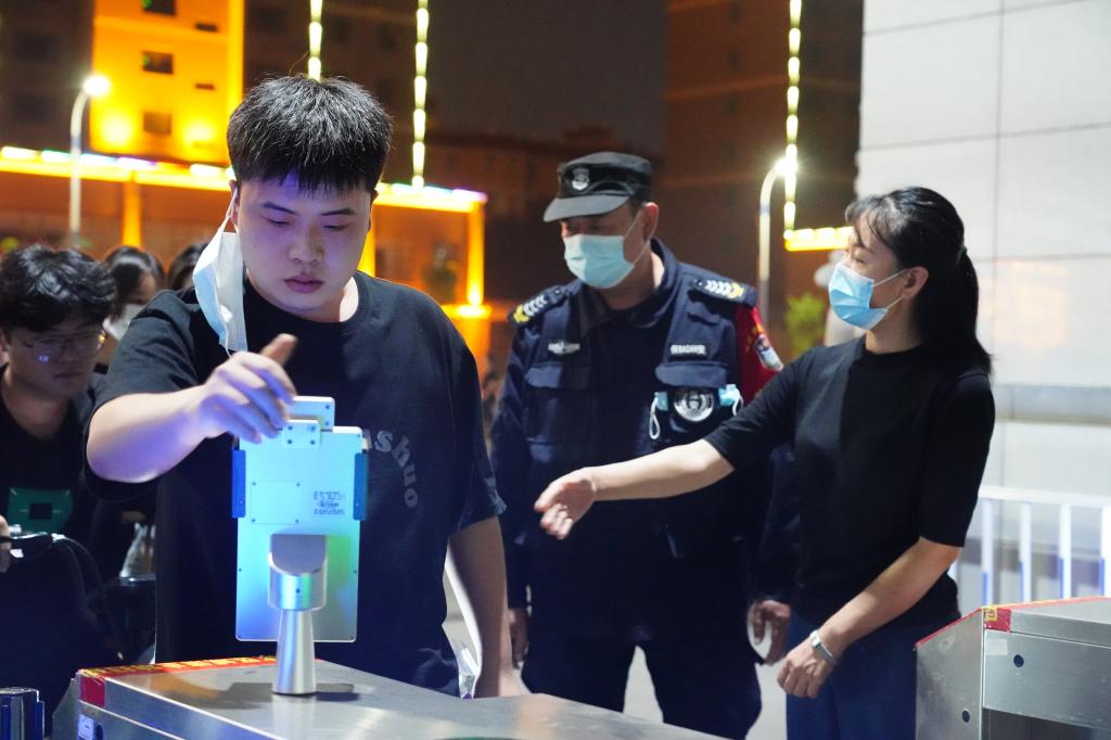 “请同学们扫场所码,打开行程码、健康码,按照地面上的一米间隔线,有序排队刷脸、测温入校。”这句话已经成为在孔明路、光武路校区值班的党员干部挂在嘴边的叮嘱。