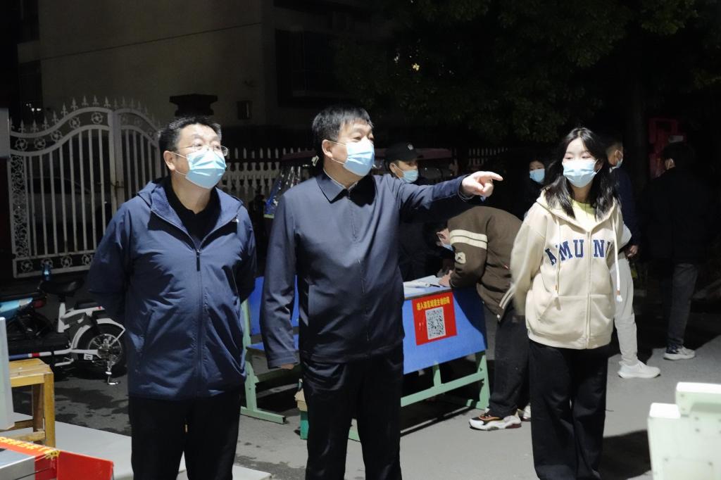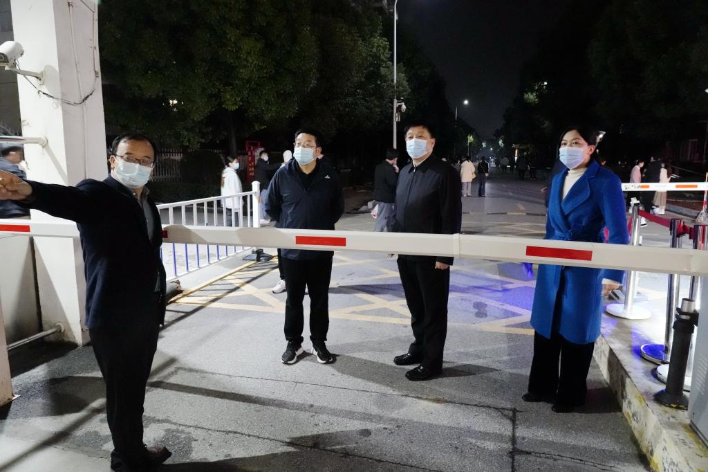 温道军一行先后来到孔明路校区南门、东门,慰问正在值班的中层干部和保卫工作人员,询问了解值班人员值守情况、防控措施落实情况。