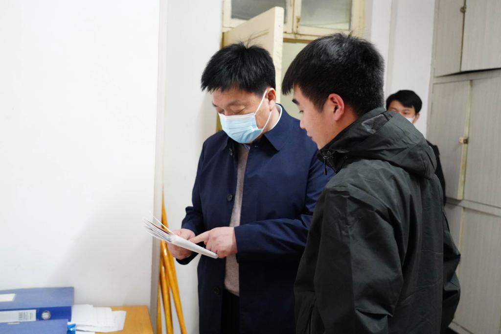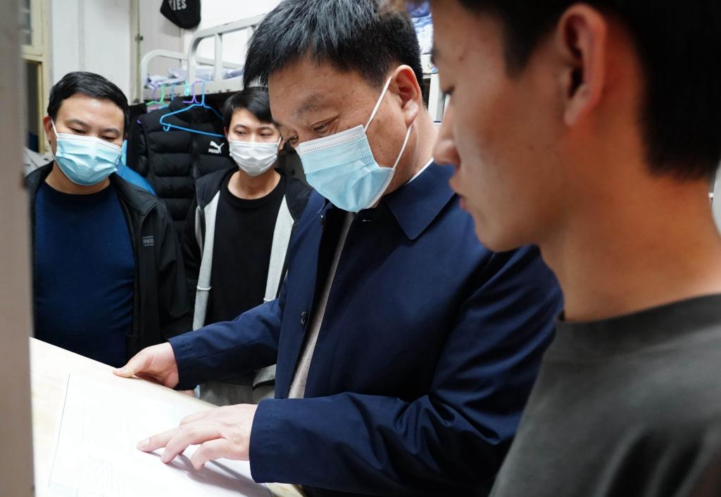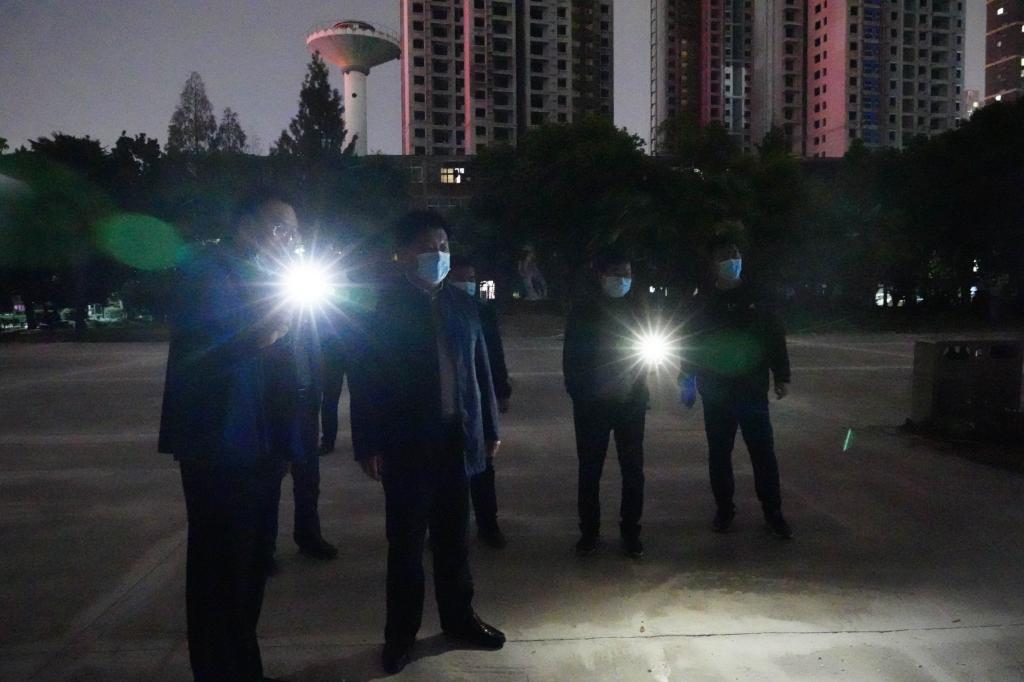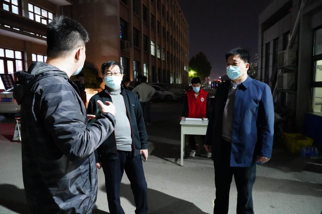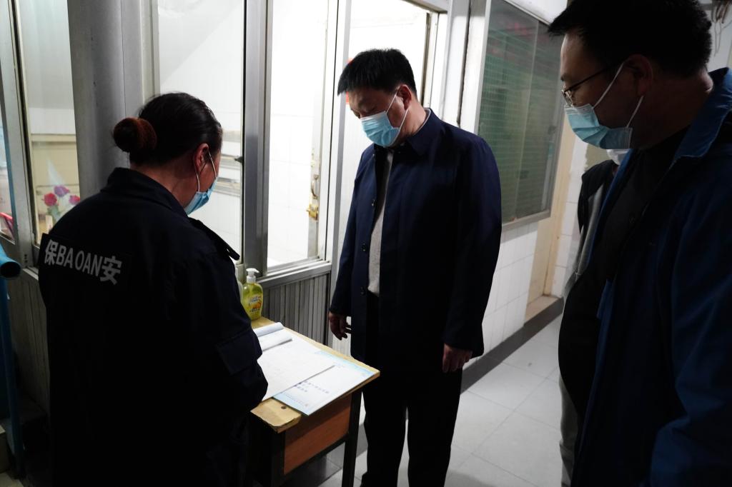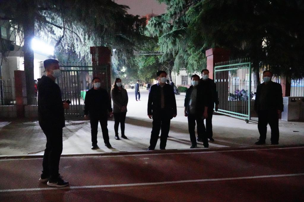 10月15日晚,党委书记温道军深入孔明路、光武路校区,督察指导关键时间节点的安全稳定和疫情防控工作,学校党政办公室、党委宣传部、保卫处、学生处、后勤服务中心、建筑工程学院、五年制管理中心等单位工作人员陪同。