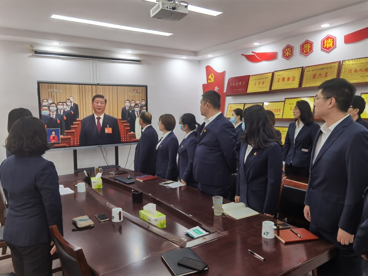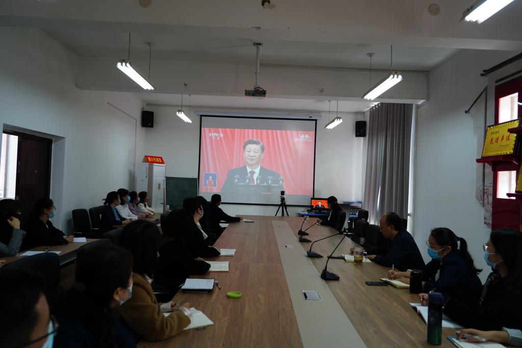 在孔明路校区办公楼第二楼会议室,学校党委理论学习中心组集中收看开幕会,全体党委理论学习中心组成员聚精会神,认真聆听,及时记录,现场不时响起阵阵掌声。大家一致认为,习近平总书记的报告明确宣示党在新征程上举什么旗、走什么路、以什么样的精神状态、朝着什么样的目标继续前进,对全面建成社会主义现代化强国两步走战略安排进行宏观展望,科学谋划未来5年乃至更长时期党和国家事业发展的目标任务和大政方针。