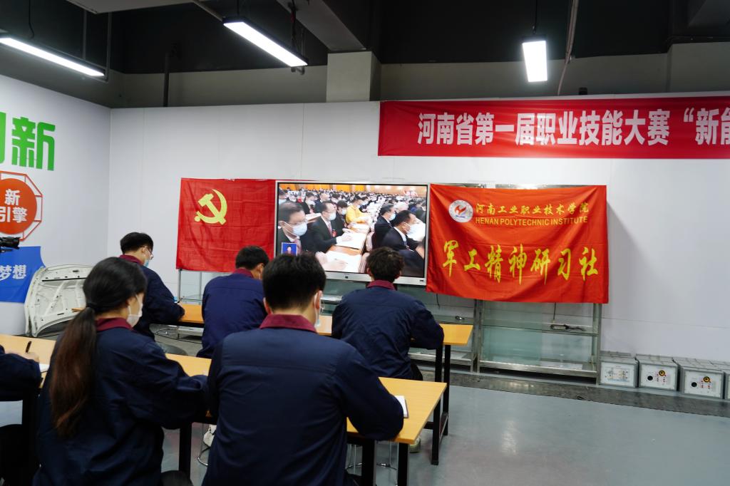 学生社团军工精神研习社集中收看开幕会