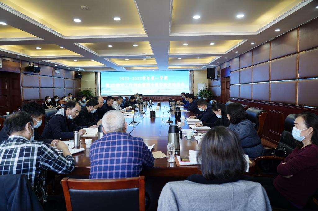 10月20日下午,学校组织召开2022-2023学年第一学期第3次教学工作例会暨期中教学检查动员会,副校长贾庆成出席并主持会议,教务处、学生处、发展规划处、招生就业处、质量管理办公室负责人,校督导室督导员,各教学单位、继续教育学院行政负责人,职业发展与就业指导教研室、创新创业教研室、心理健康教育教研室负责人参加会议。