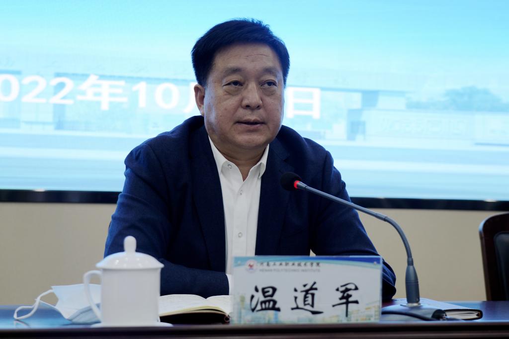 10月25日下午,学校在办公楼一楼会议室召开疫情防控工作会议,校领导温道军、王伟、杜建根、李荣胜、屈保中、樊有平出席,全体中层干部正职参加。会议由党委书记温道军主持。
