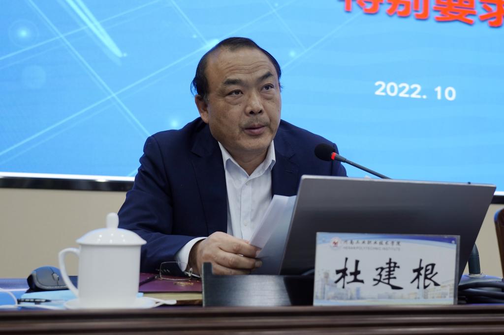 会上,党委副书记杜建根通报了省、市当前疫情防控总体情况,分析研判了学校当前疫情防控中存在的主要问题,并领学讲解了南阳市疫情防控工作会议上提出的《新一轮新冠肺炎疫情处置特别要求》。