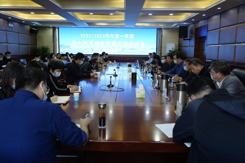 11月2日下午,学校2022-2023学年第一学期期中教学检查教师代表座谈会在行政楼四楼会议室召开。教务处、人事处、学生处、发展规划处、国有资产管理处、质量管理办公室、信息化管理办公室、产教融合发展中心、团委、后勤服务中心、图书馆等部门负责人和29名教师代表参加了会议。副校长贾庆成出席并主持会议。